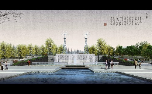 印象宿州風(fēng)車瀑布廣場(chǎng)節(jié)點(diǎn)位于新汴河風(fēng)景區(qū)206國(guó)道東側(cè),總設(shè)計(jì)面積約20700㎡。設(shè)計(jì)理念意圖用動(dòng)態(tài)水景的多層之勢(shì)體現(xiàn)城市發(fā)展之活力,表現(xiàn)出宿州城市動(dòng)感,向上的城市風(fēng)貌。另外,在古詩(shī)中廣為流傳的宿州八景也通過(guò)繪畫(huà)和雕刻的形式在廣場(chǎng)上展現(xiàn),生動(dòng)地體現(xiàn)宿州市變化的滄海桑田,讓游人憶古惜今,領(lǐng)略宿州城市的巨大變化。