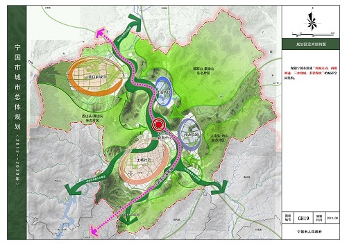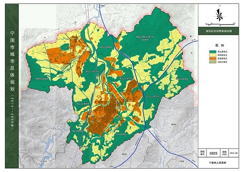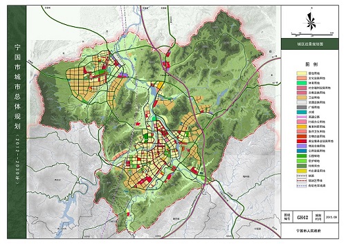 寧國市地處安徽省域東南部,市域面積2447平方公里,全市常住人口37.69萬。規(guī)劃按照綠色轉(zhuǎn)型發(fā)展理念,通過建立生態(tài)激勵(lì)機(jī)制的實(shí)施路徑,落實(shí)山水“融”城的“寧國發(fā)展模式”,構(gòu)建“兩城互動(dòng)、三廊相通、三水繞城、多星輝映”的城市空間結(jié)構(gòu)。