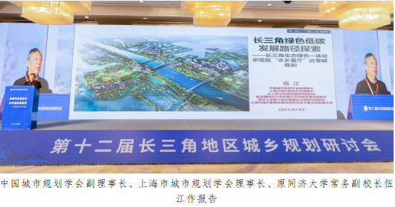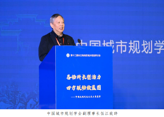 學(xué)術(shù)報(bào)告階段,會(huì)議特邀中國(guó)城市規(guī)劃學(xué)會(huì)副理事長(zhǎng)、上海市城市規(guī)劃學(xué)會(huì)理事長(zhǎng)、原同濟(jì)大學(xué)常務(wù)副校長(zhǎng)伍江,安徽省住房城鄉(xiāng)建設(shè)廳一級(jí)巡視員高冰松,長(zhǎng)三角區(qū)域合作辦公室經(jīng)濟(jì)發(fā)展組副組長(zhǎng)、上海市發(fā)展改革委長(zhǎng)三角一體化發(fā)展處副處長(zhǎng)黃超明,江蘇省城市規(guī)劃研究會(huì)副理事長(zhǎng)、江蘇省規(guī)劃設(shè)計(jì)集團(tuán)有限公司總經(jīng)理、黨委副書記梅耀林分別作了題為《長(zhǎng)三角綠色低碳發(fā)展路徑探——長(zhǎng)三角生態(tài)綠色一體化示范區(qū)“水鄉(xiāng)客廳”近零碳規(guī)劃》《修舊如“新”——基于“更(gèng)新”的保護(hù)與利用》《落實(shí)長(zhǎng)三角一體化發(fā)展國(guó)家戰(zhàn)略的探索與實(shí)踐》《國(guó)家文化公園規(guī)劃編制探索》的報(bào)告。學(xué)術(shù)報(bào)告由浙江省國(guó)土空間規(guī)劃學(xué)會(huì)理事長(zhǎng)、浙江工業(yè)大學(xué)設(shè)計(jì)與建筑學(xué)院院長(zhǎng)、教授陳前虎主持。
